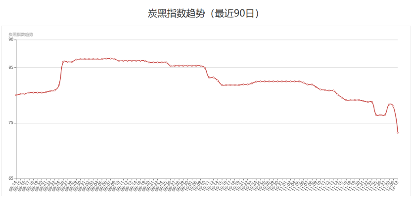 炭黑產(chǎn)業(yè)網(wǎng)根據(jù)市場N330/N220/N550三個牌號最新市場成交價格,并分別按一、二、三線品牌權(quán)重分配計算后得出今日最新炭黑指數(shù)為73.28,與之前相比炭黑指數(shù)依然維持在低谷區(qū)間。